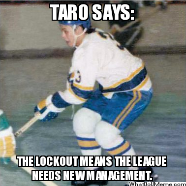 Anyone remember Taro Tsujimoto? He was the fictional pick of the Buffalo Sabres in the late stages of the 1974 conference call draft - the 11th round specifically. In the mean time, it's been a while since I've heard "We want Taro" at the Center but I had this to say following his 'rookie card' picture. This mystery man looks a lot like a really young Pat Lafontaine (who at that time would have only been 9 years old and wasn't drafted until the '83 off-season).